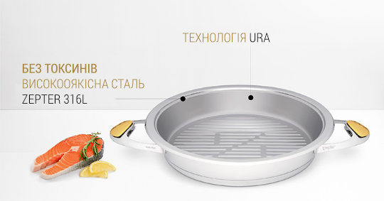 Zepter URA (Ultimate Resistant Application) – інноваційна антипригарна технологія. Не застосовується шкідливе покриття, безпечно для вашого здоров’я.