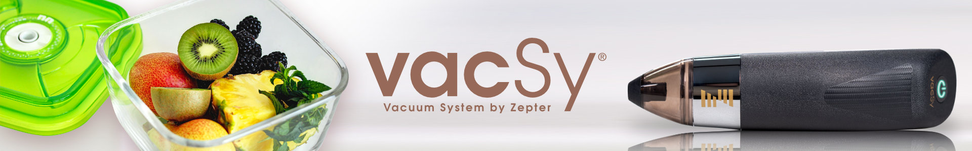 Зручна та універсальна вакуумна система, яку можна поєднувати з VacSy® контейнерами, посудом Zepter Masterpiece, а також із будь-якими комерційними контейнерами.